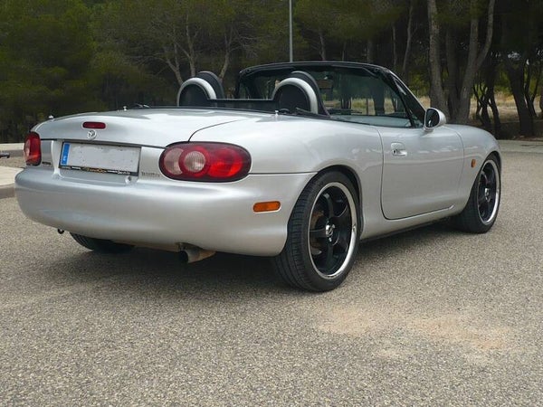 MAZDA MX5 NB-2 MOTOR 1600 DE 110 CV.Mazda Mx5 Cabrio Modelo NB-2 de techo de Lona en perfecto estado , Motor de 1600 CC. De 110 CV. Fecha de primera Matriculación de Diciembre de 2002.EXTRAS: Asientos deportivos en piel negros,Barras antivuelco con Paravientos, Radio CD,antena eléctrica original Mazda, elevalunas electricos, direccion asistida,Taloneras cromadas debajo de las puertas,Empuñadura freno de Mano en cuero, Aire Acondicionado,4 x Llantas de 17’’ con 4 Neumaticos al 80% de vida útil y se entrega con esas llantas de las fotos o con las de 15’’ Originales,a elegir,Caja de Cambios de 5 velocidades ,Manos libres Parrot para el teléfono.etc.Consultar sin ningún Compromiso y se puede ver y Probar en Barranda-Caravaca de la Cruz(Murcia)